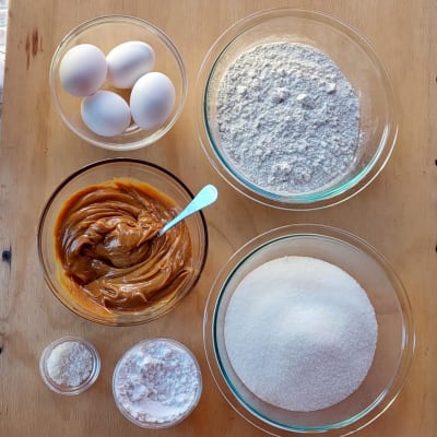 1 taza de aceite; 1 taza de harina; 1 taza de azúcar; 1 taza de cogñac, o de ron. Se puede añadir 1 yema de huevo, una pizca de canela y unas gotas de anís.